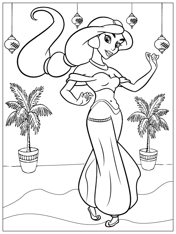 : Druckbar herunterladen Arabische Prinzessin Jasmin Malvorlage