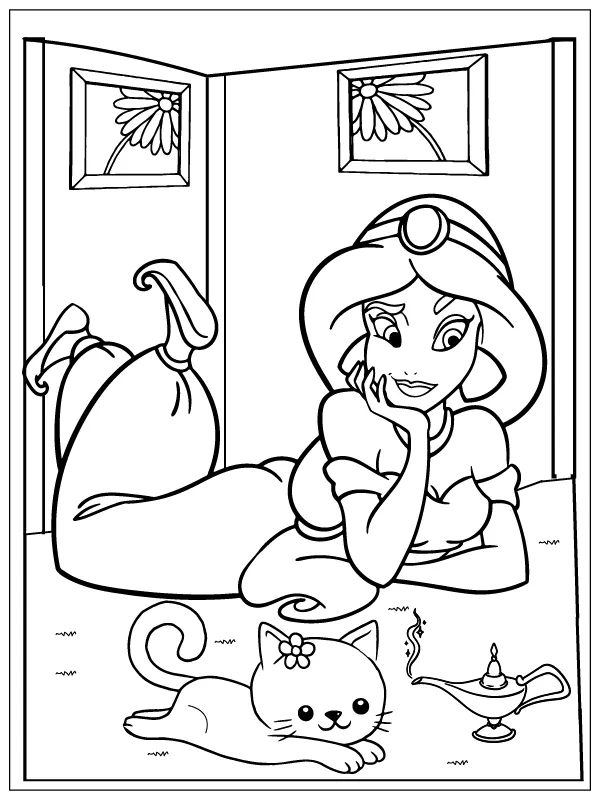 : Druckbar herunterladen Jasmin mit einer süßen Katze Malvorlage
