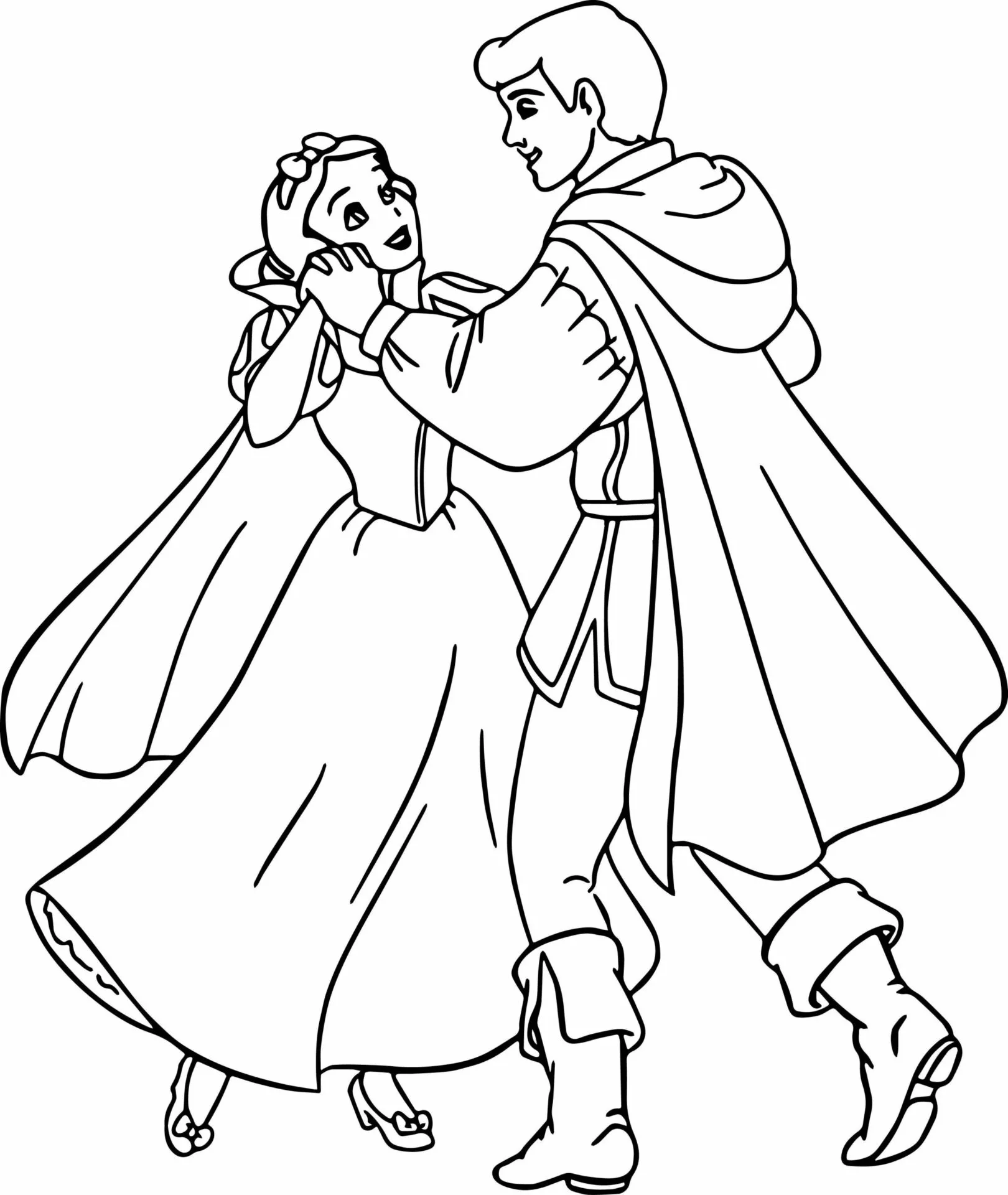 : Druckbar herunterladen Schneewittchen tanzt mit dem Prinzen Malvorlage