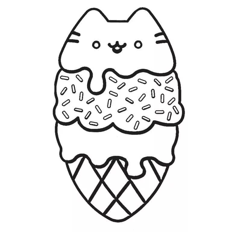 : Druckbar herunterladen Pusheen Ice Cream Malvorlage