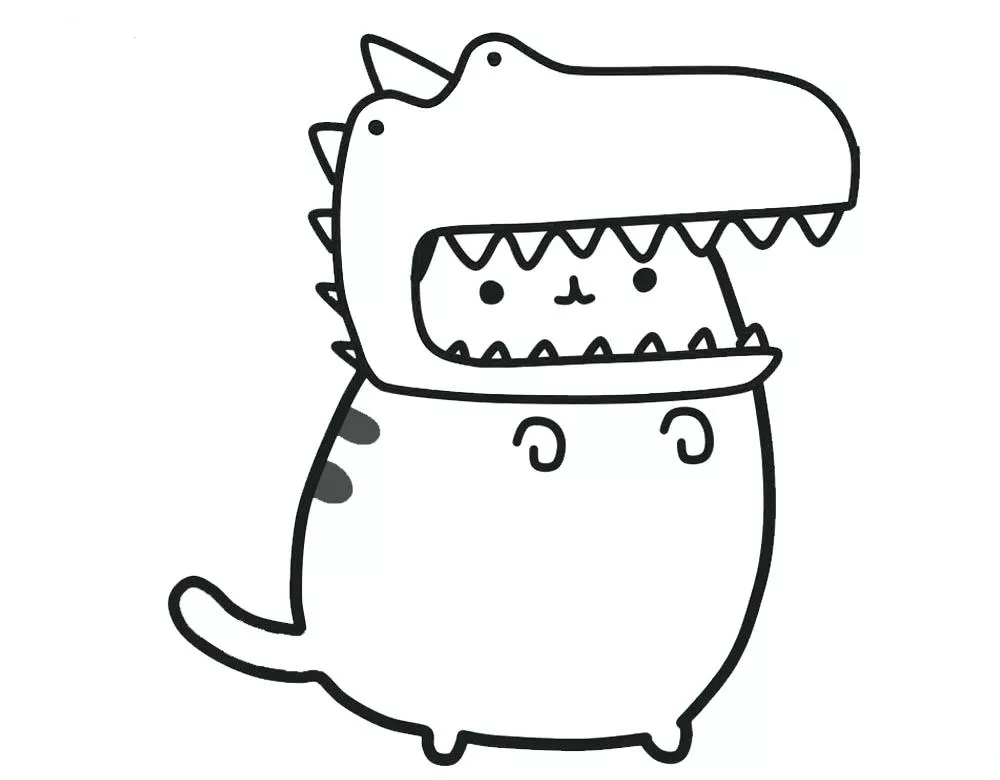 : Druckbar herunterladen Pusheen Wearing Dinosaur Hat Malvorlage