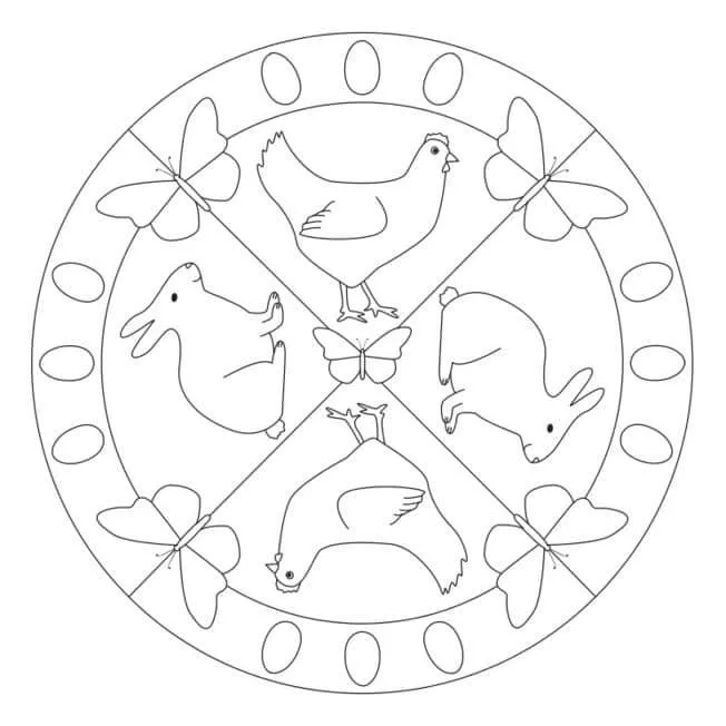 : Druckbar herunterladen Rabbits and Chickens Easter Mandala Malvorlage