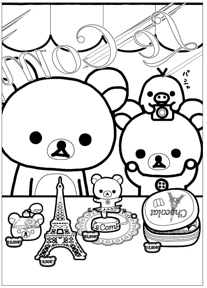 : Druckbar herunterladen Rilakkuma with Friends Malvorlage