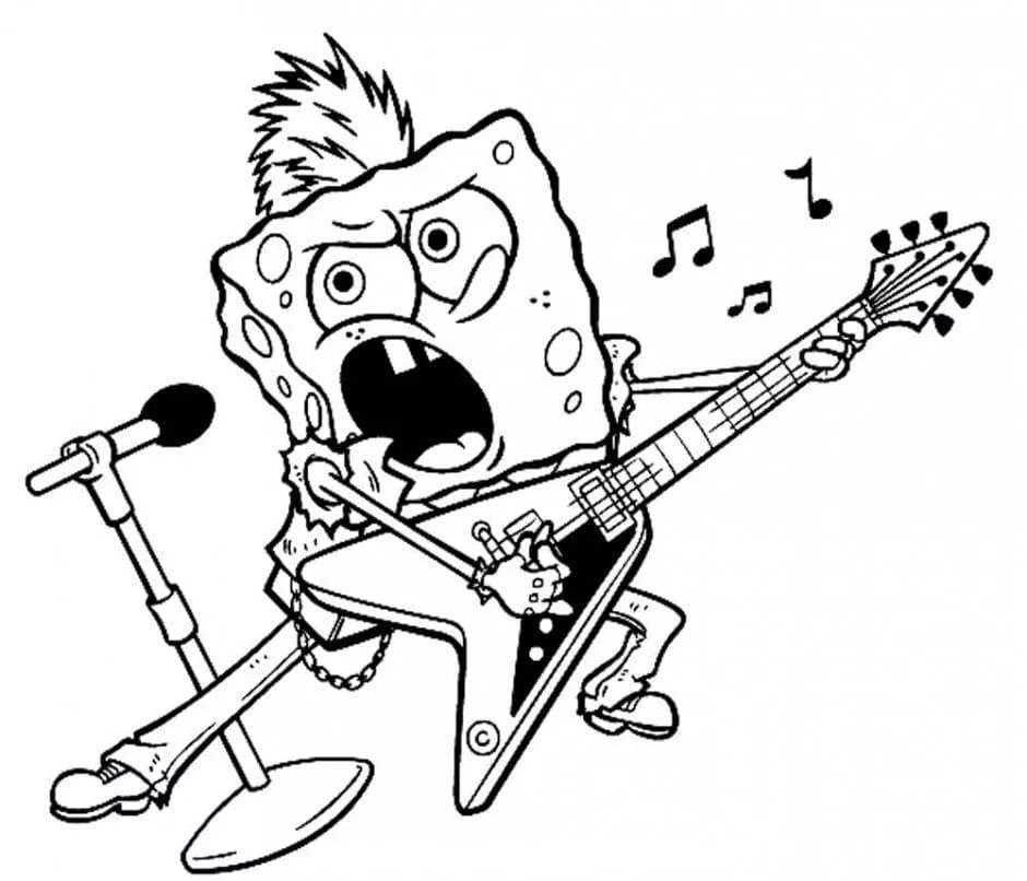 : Druckbar herunterladen Rockstar SpongeBob Malvorlage