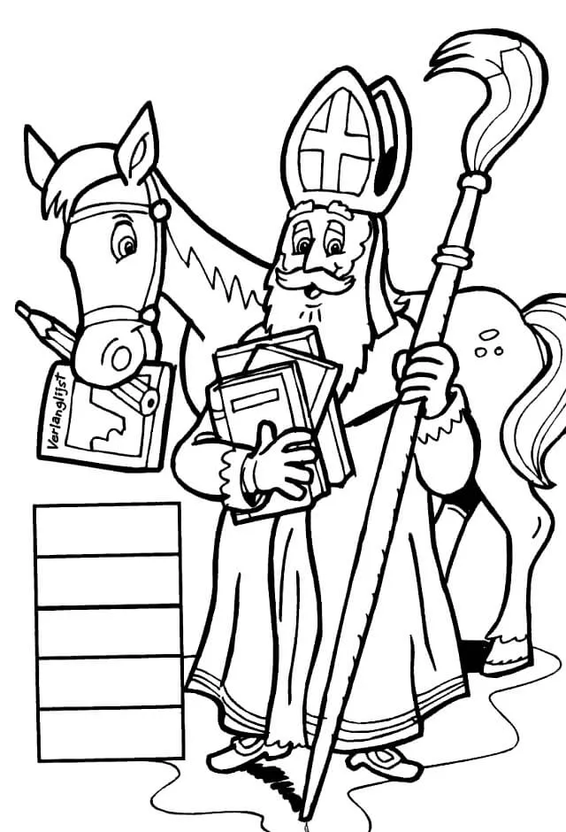 : Druckbar herunterladen Saint Nicholas and Horse Malvorlage
