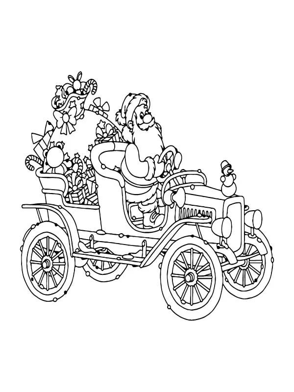 : Druckbar herunterladen Santa Claus Driving His Car Malvorlage