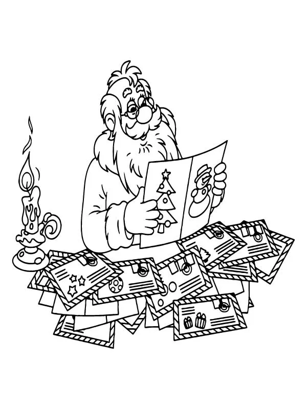 : Druckbar herunterladen Santa Claus Reading Letters Malvorlage