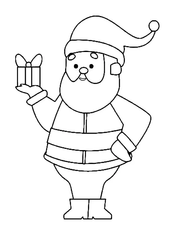 : Druckbar herunterladen Santa Claus with a Gift Malvorlage