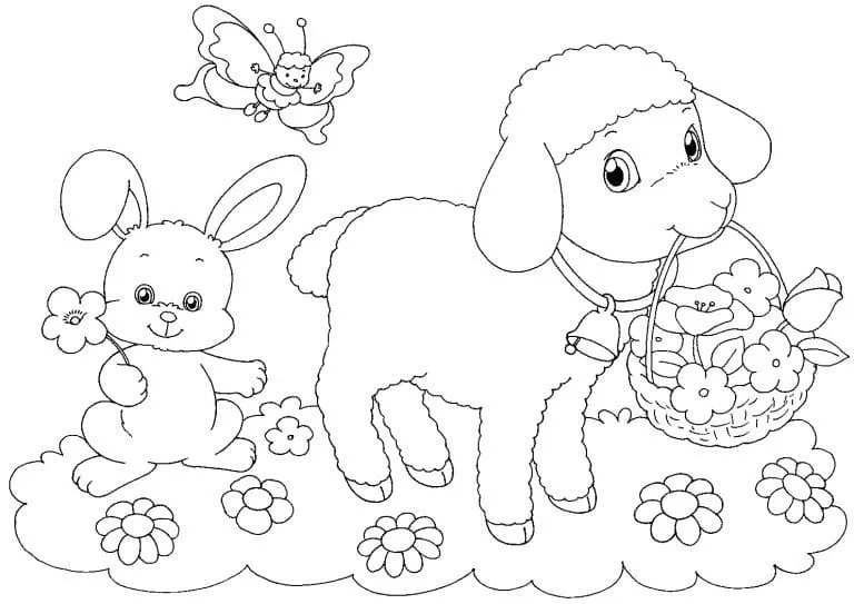 : Druckbar herunterladen Sheep with Easter Basket Malvorlage