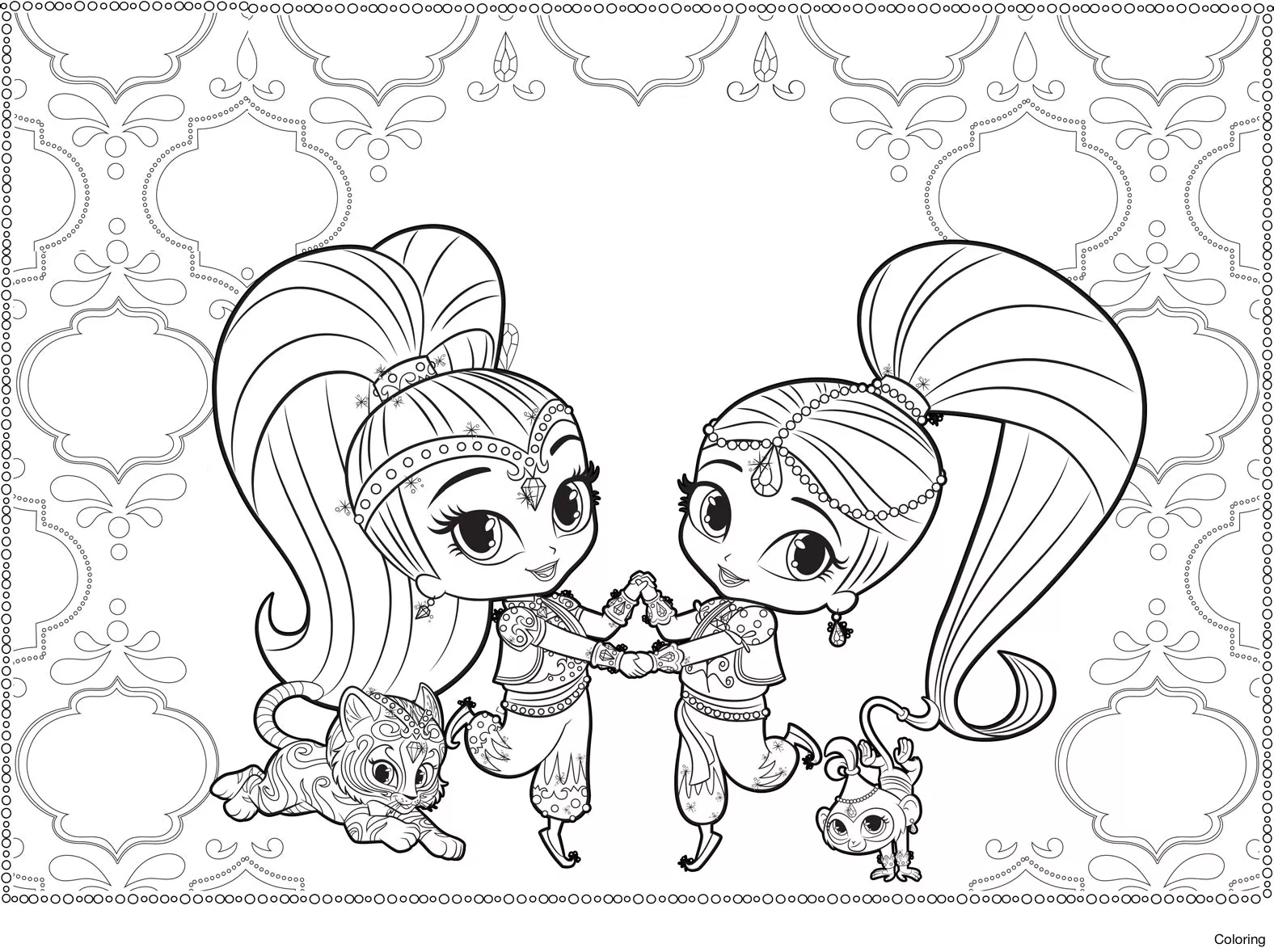 : Druckbar herunterladen Shimmer And Shine Holding Hands Malvorlage