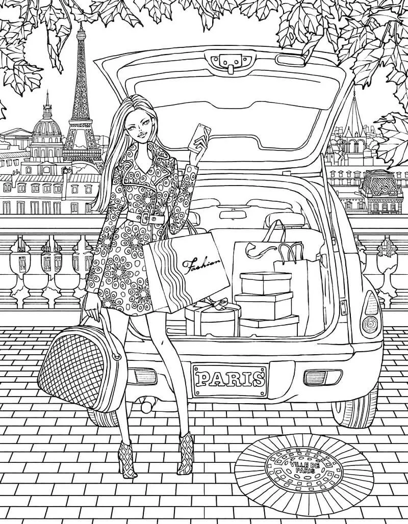 : Druckbar herunterladen Shopping in Paris Malvorlage
