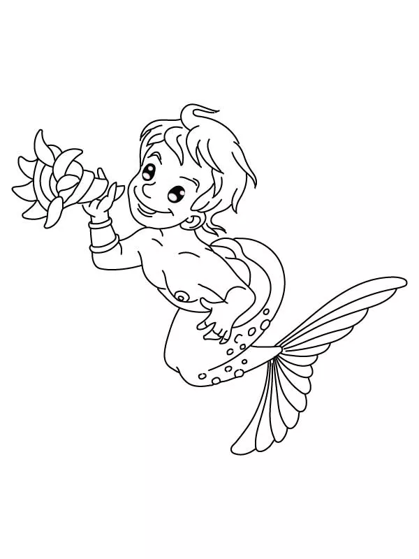 : Druckbar herunterladen Short Hair Mermaid Malvorlage