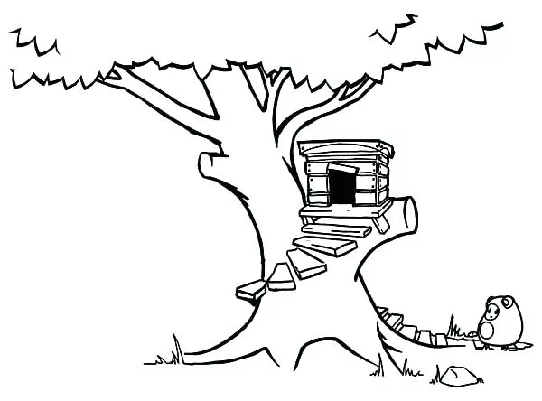 : Druckbar herunterladen Simple Tree House Malvorlage