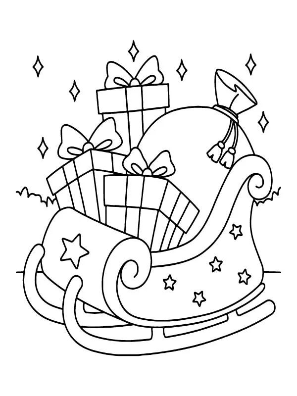 : Druckbar herunterladen Sleigh with Gifts Malvorlage
