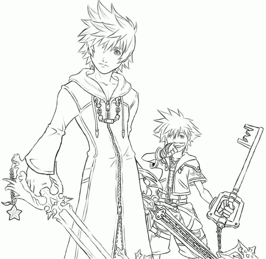 : Druckbar herunterladen Sora and Roxas Malvorlage