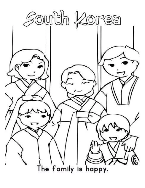 : Druckbar herunterladen South Korea Family Malvorlage