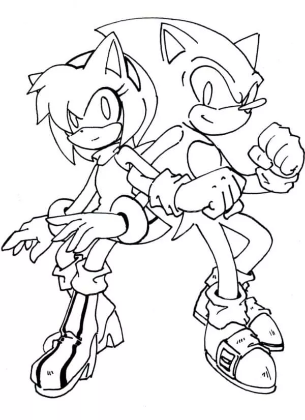 : Druckbar herunterladen Sonic mit Amy Rose Malvorlage
