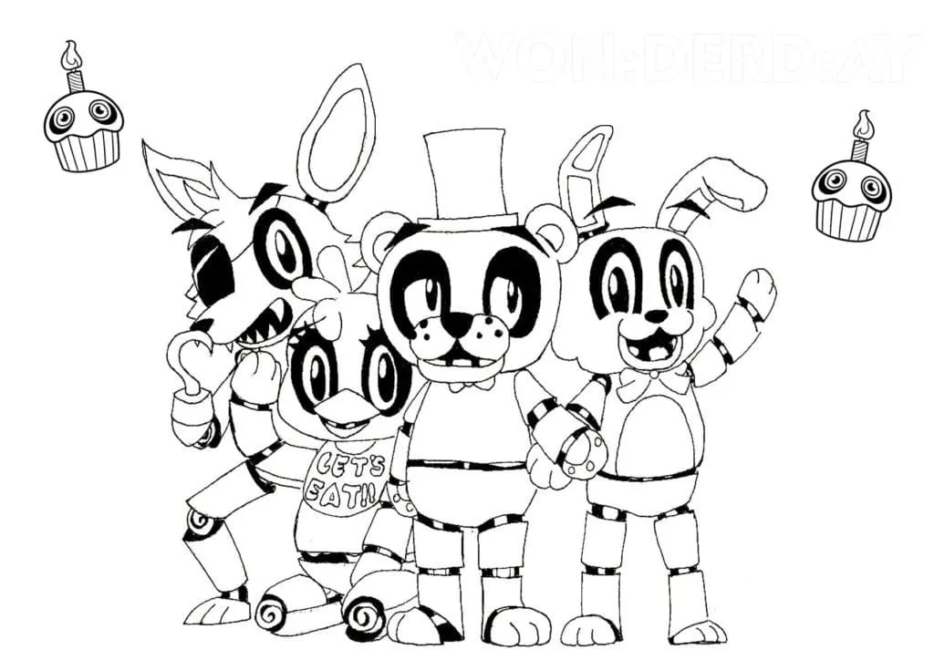 : Druckbar herunterladen Niedliche Animatronics Malvorlage