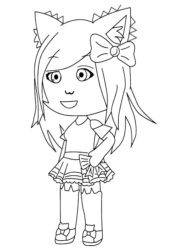: Druckbar herunterladen Gacha Nox Mädchen mit Katzenohren Malvorlage