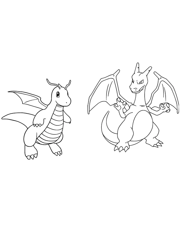 : Druckbar herunterladen Dragonite und Charizard Malvorlage