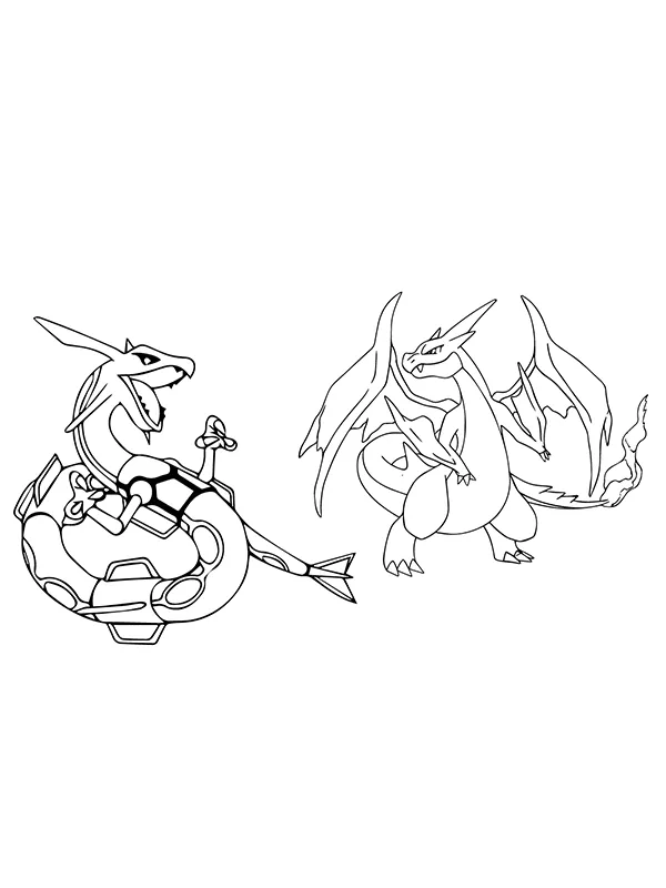 : Druckbar herunterladen Rayquaza und Charizard Malvorlage