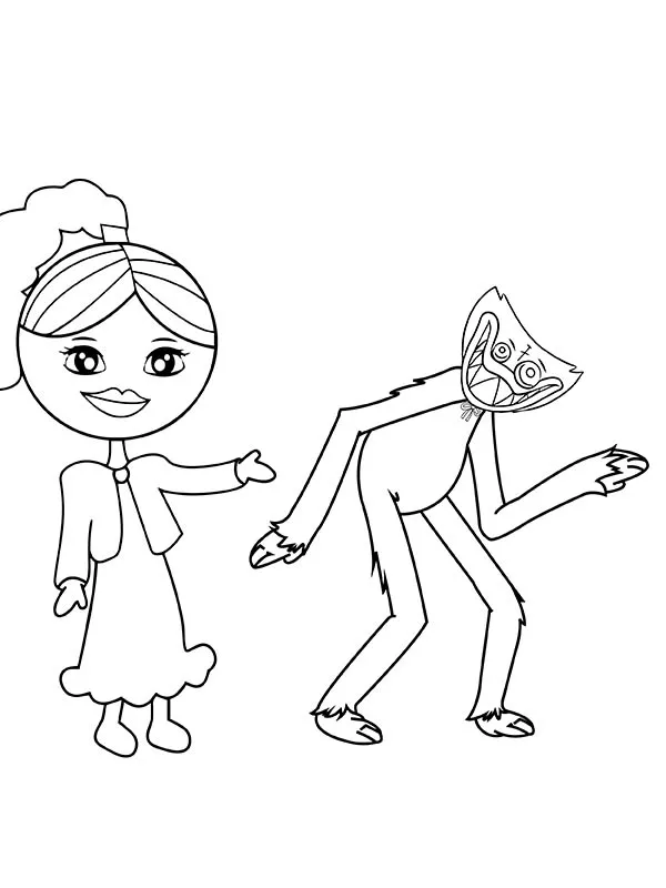 : Druckbar herunterladen Huggy Wuggy und Puppentanz Malvorlage
