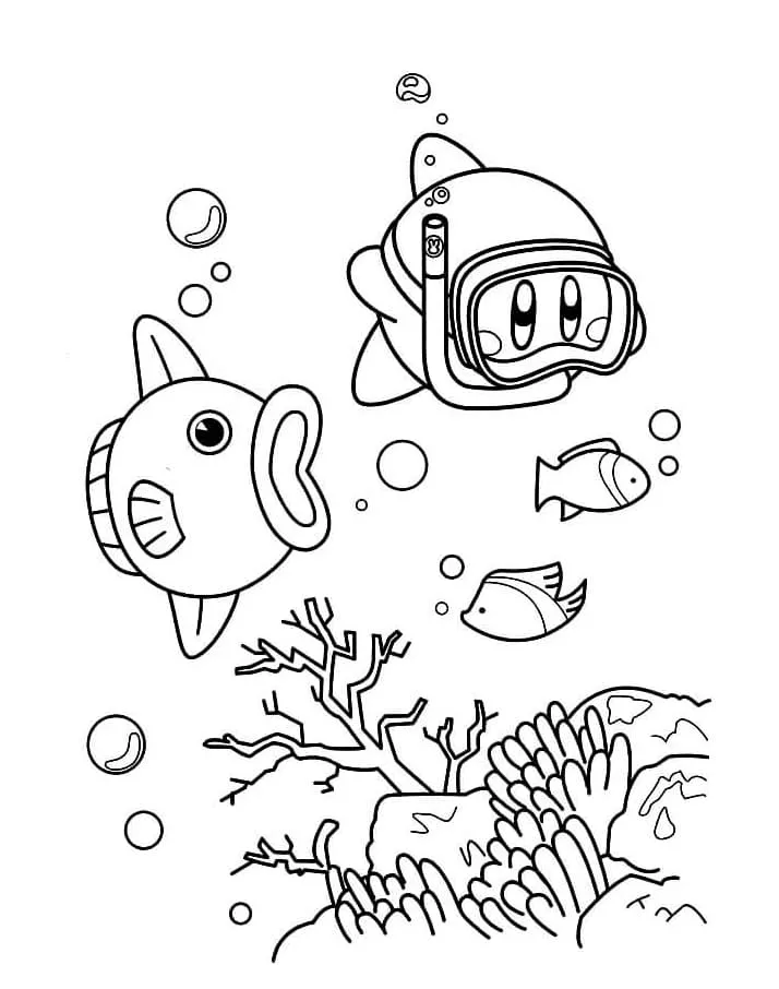 : Druckbar herunterladen Kirby unter dem Ozean Malvorlage