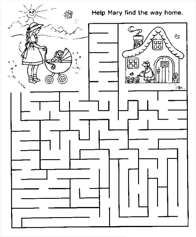 : Druckbar herunterladen Weg nach Hause Labyrinth Malvorlage