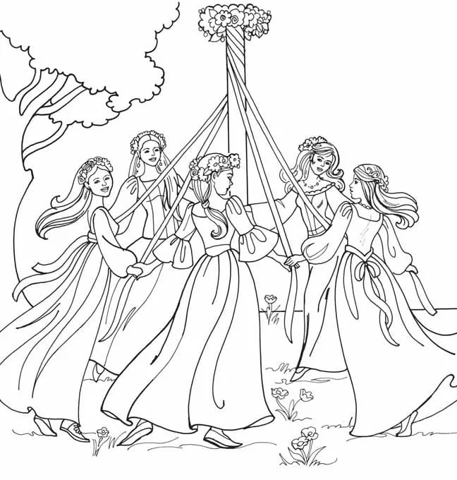 : Druckbar herunterladen Maibaum kostenlos zum Ausdrucken Malvorlage