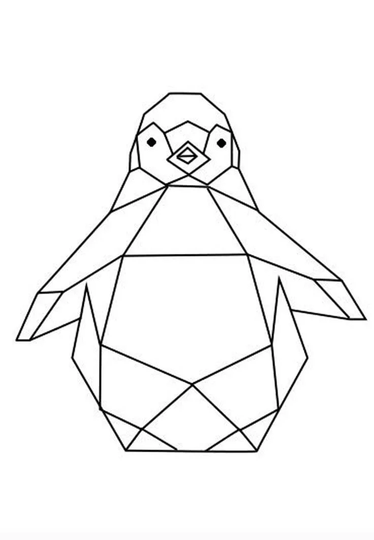 : Druckbar herunterladen Origami-Pinguin Malvorlage