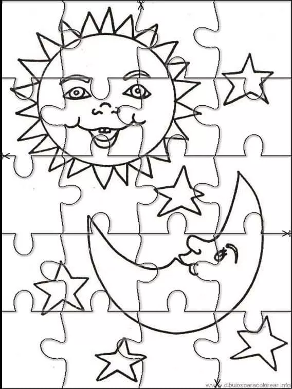 : Druckbar herunterladen Sonne und Mond Puzzle Malvorlage