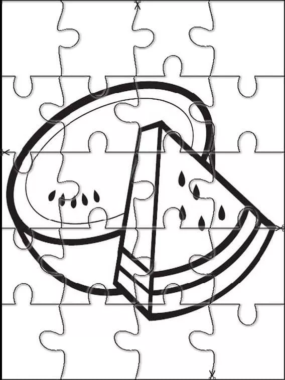 : Druckbar herunterladen Wassermelonen-Puzzle Malvorlage