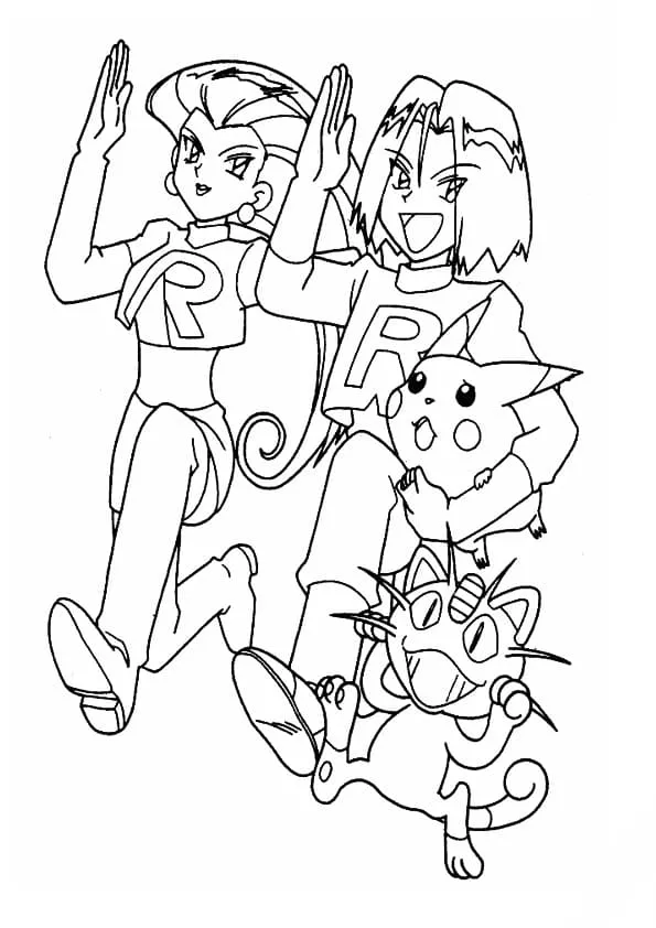 : Druckbar herunterladen Team Rocket und Pikachu Malvorlage
