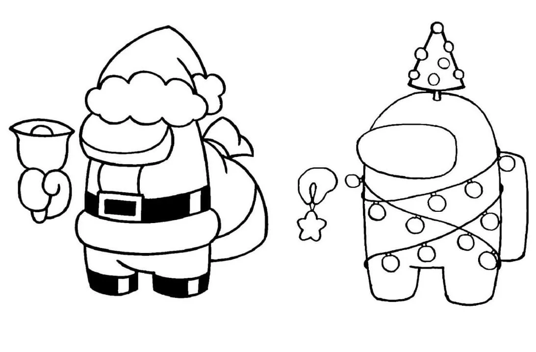 Beschreibung der Färbung : Druckbar herunterladen Unter uns Weihnachtsmann und Weihnachtsbaum Malvorlage