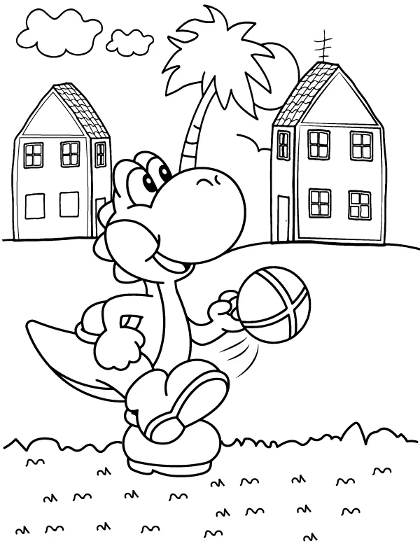 : Druckbar herunterladen Yoshi Bereit zum Spielen Malvorlage