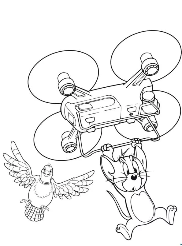 : Druckbar herunterladen Jerry mit Drohne Malvorlage