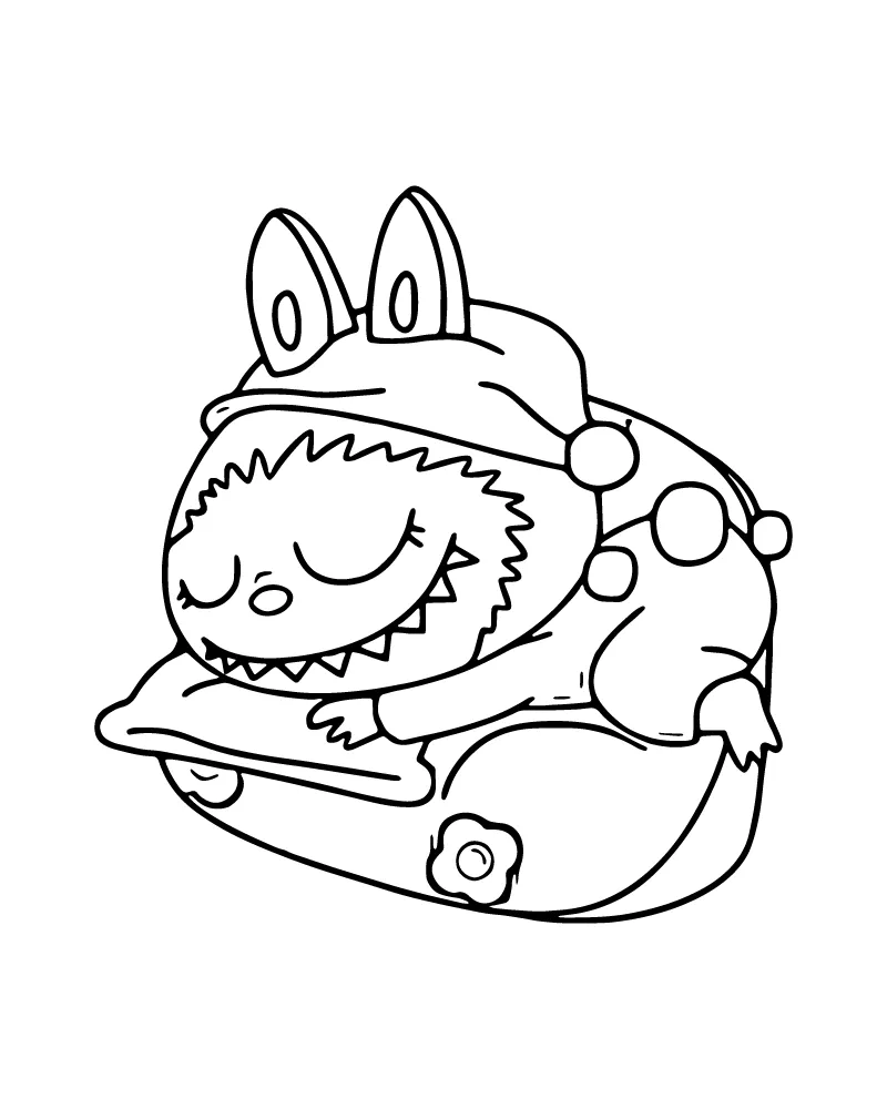 : Druckbar herunterladen Labubu Karikatur Malvorlage