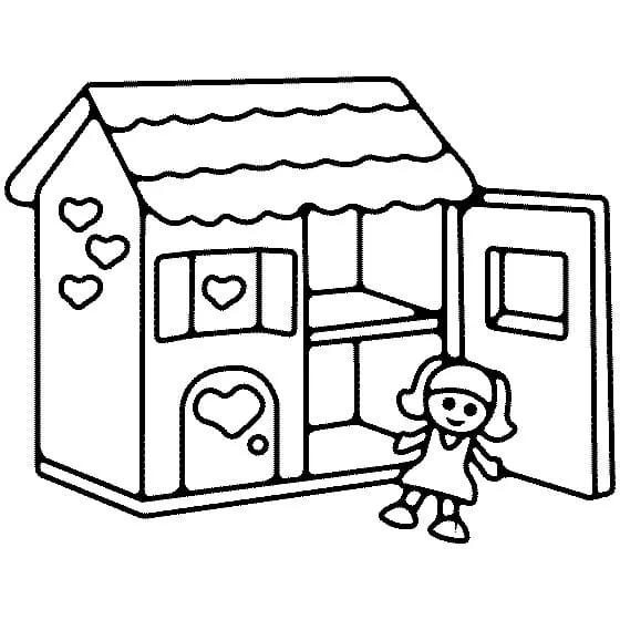 : Druckbar herunterladen Einfaches Puppenhaus Malvorlage