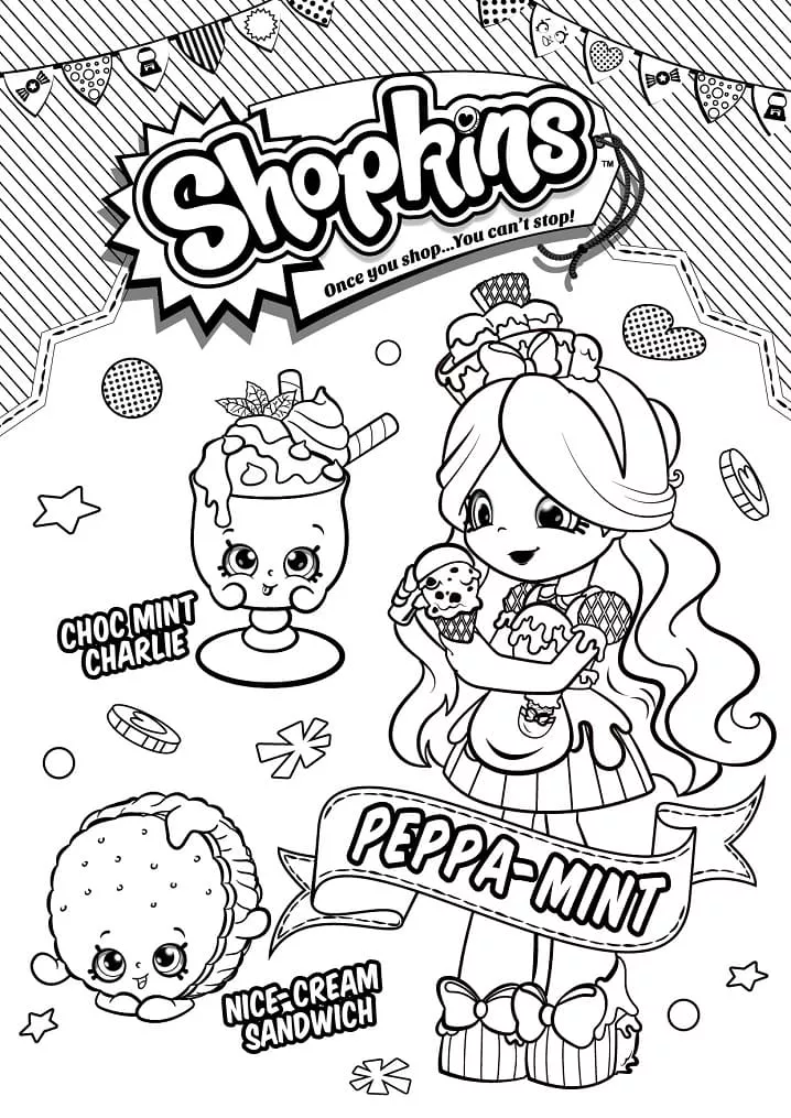 : Druckbar herunterladen Peppa Mint Shopkins Malvorlage