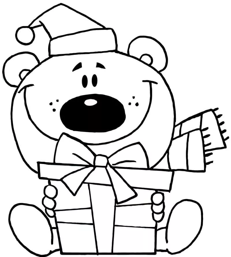 : Druckbar herunterladen Teddybär und Geschenk Malvorlage