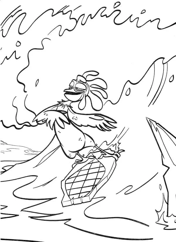 : Druckbar herunterladen Lustiges Hühnchen Surfen Malvorlage