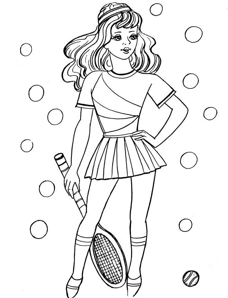 : Druckbar herunterladen Schöne Frau und Tennis Malvorlage