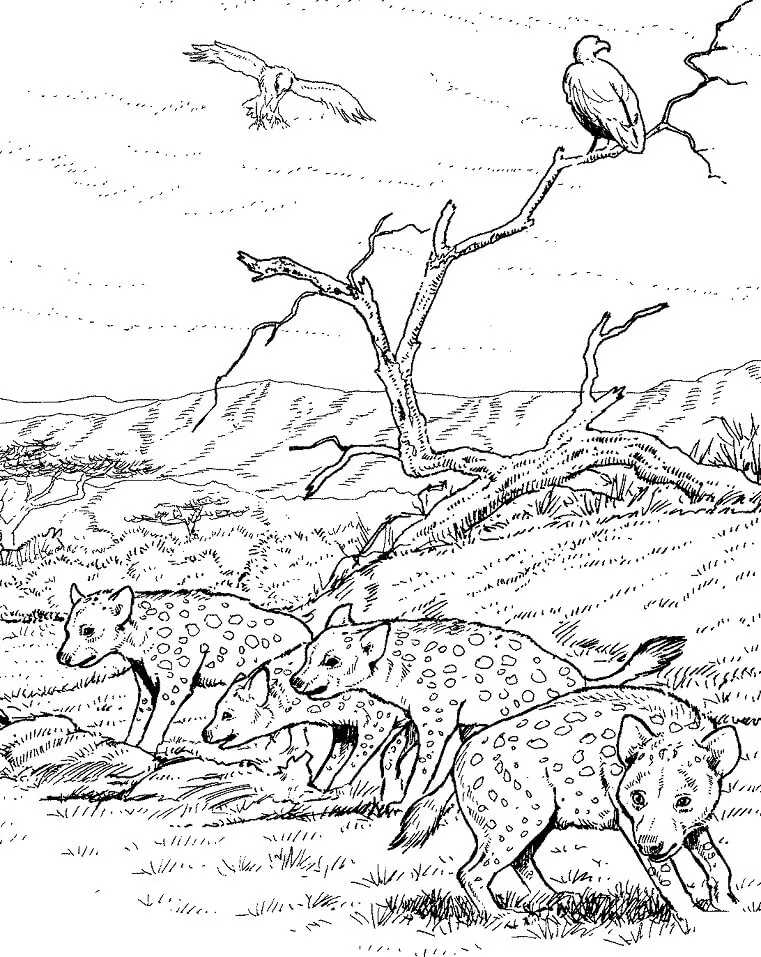 : Druckbar herunterladen Spotted Hyenas Clan Malvorlage