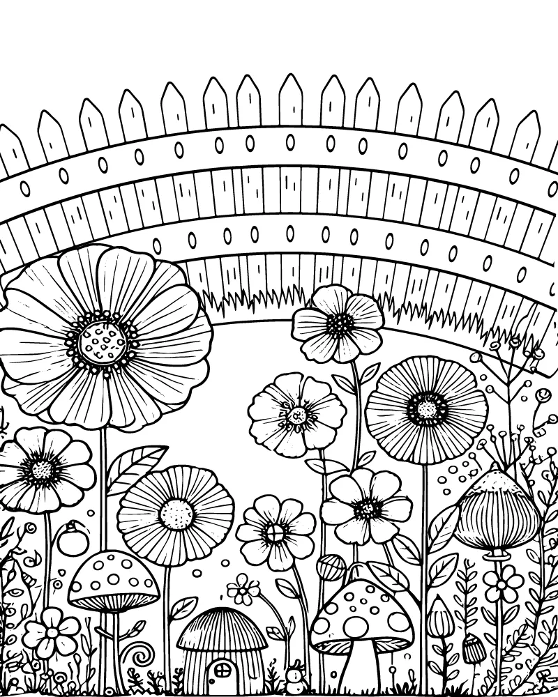 : Druckbar herunterladen Spring Garden Coloring Page Malvorlage