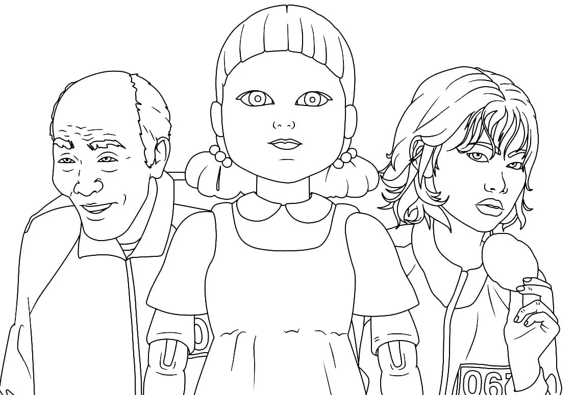 : Druckbar herunterladen Tintenfischspiel zum Ausmalen Malvorlage