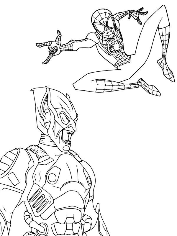 : Druckbar herunterladen Spiderman mit Green Goblin Malvorlage