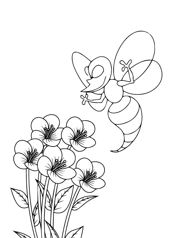 : Druckbar herunterladen Entzückende Blumen und Wespe Malvorlage