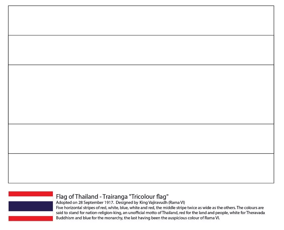 : Druckbar herunterladen Thailand Flag Malvorlage