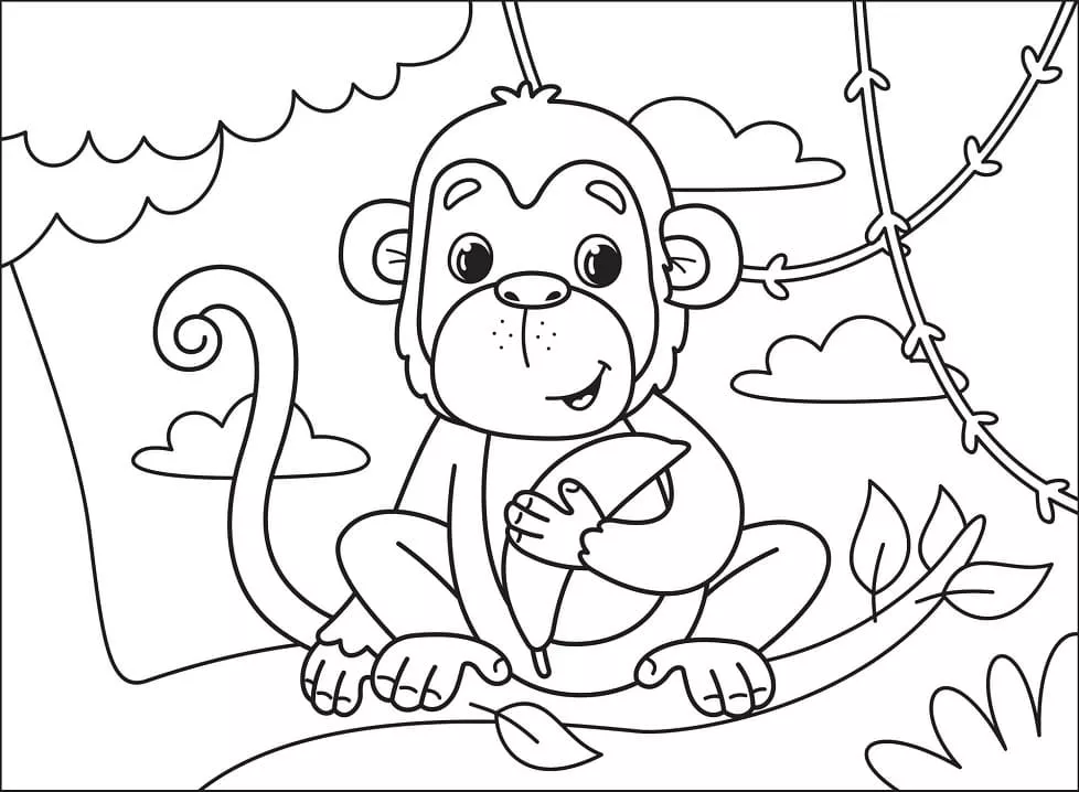 : Druckbar herunterladen Niedlicher Affe auf einem Baum Malvorlage