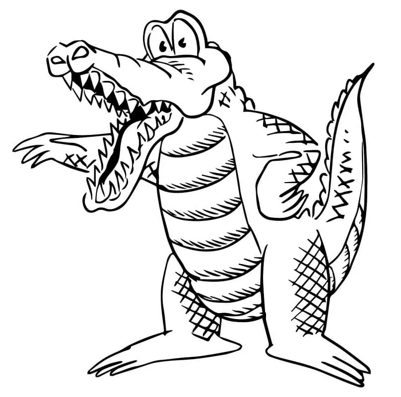 : Druckbar herunterladen Wütender Cartoon-Alligator Malvorlage